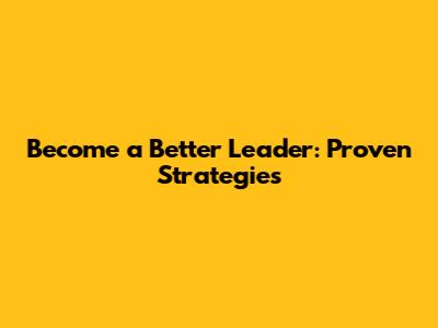 Become A Better Leader: Proven Strategies