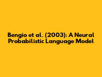 Bengio Et Al. (2003): A Neural Probabilistic Language Model
