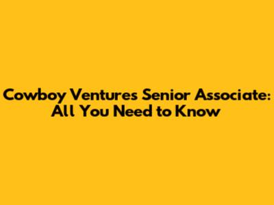 Cowboy Ventures Senior Associate: All You Need To Know