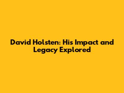 David Holsten: His Impact And Legacy Explored