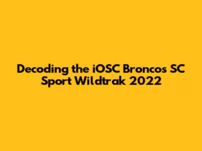 Decoding The IOSC Broncos SC Sport Wildtrak 2022