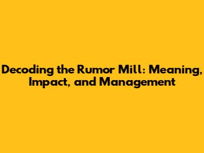Decoding The Rumor Mill: Meaning, Impact, And Management