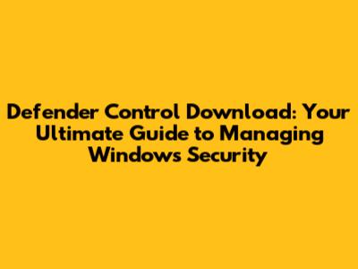 Defender Control: Download, Setup & Troubleshooting Guide