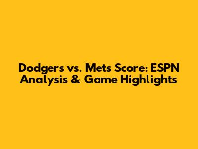 Dodgers Vs. Mets Score: ESPN Analysis & Game Highlights