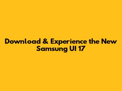 Download & Experience The New Samsung UI 17
