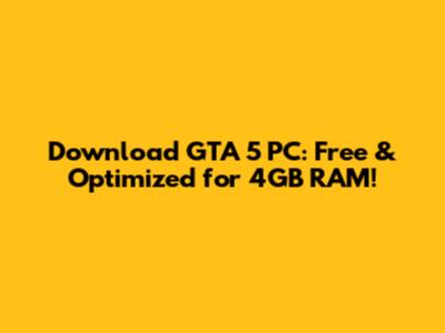 Download GTA 5 PC: Free & Optimized For 4GB RAM!