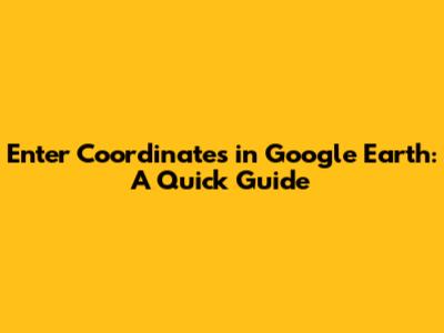 Enter Coordinates In Google Earth: A Quick Guide