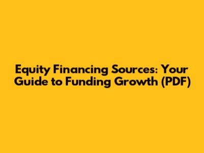 Equity Financing Sources: Your Guide To Funding Growth (PDF)