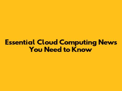 Essential Cloud Computing News You Need To Know