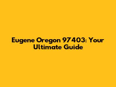 Eugene Oregon 97403: Your Ultimate Guide