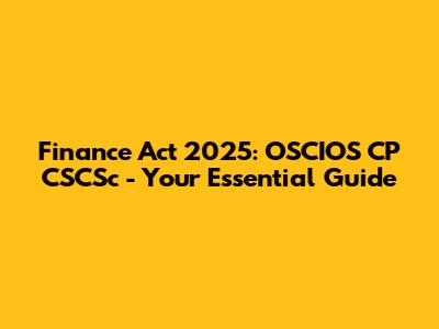Hey everyone! Let's dive into something super important: the OSCIOS CP CSCSc Finance Act 2025. I know, the name might sound a bit like alphabet soup, but trust me, it's packed with changes that could seriously affect you, especially if you're involved in finance, compliance, or the OSCIOS CP CSCSc ecosystem. In this guide, we'll break down the key aspects of the act, what they mean, and how you can prepare. Think of this as your go-to resource for navigating the ins and outs of the new legislation. We'll start by clarifying what each of these terms – OSCIOS, CP, and CSCSc – represents. Then, we'll move on to the core changes introduced by the Finance Act 2025, covering everything from regulatory updates and financial instruments to the tax implications and the impact on various sectors. We'll also explore the practical steps you can take to stay compliant and leverage these changes for success. Get ready to have all your questions answered, and to gain a clear understanding of the Finance Act 2025's impact. If you are looking for information on this topic, consider reading this guide. It's designed to be comprehensive, accessible, and, hopefully, a little less intimidating than the official documents. Let's make this complicated topic easy to understand. Ready? Let's go!