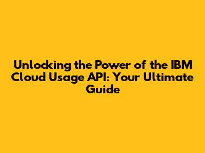 IBM Cloud Usage API: A Comprehensive Guide