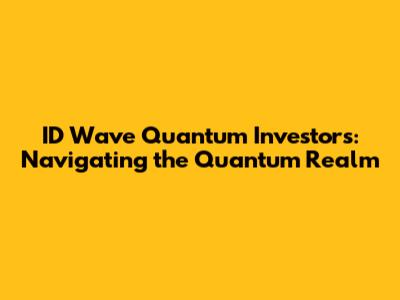 ID Wave Quantum Investors: Navigating The Quantum Realm