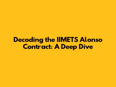 IIMETS & Alonso: Decoding The Contract Details