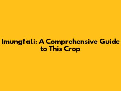 Imungfali: A Comprehensive Guide To This Crop