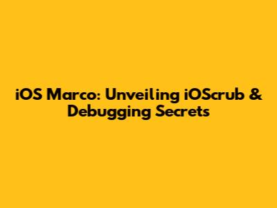 IOS Marco: Unveiling IOScrub & Debugging Secrets