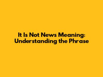 It Is Not News Meaning: Understanding The Phrase