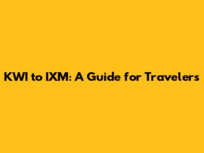 KWI To IXM: A Guide For Travelers