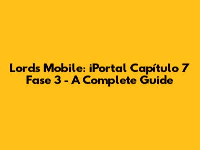Lords Mobile: IPortal Capítulo 7 Fase 3 - A Complete Guide