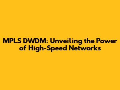 MPLS DWDM: Unveiling The Power Of High-Speed Networks