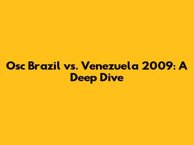 Osc Brazil Vs. Venezuela 2009: A Deep Dive