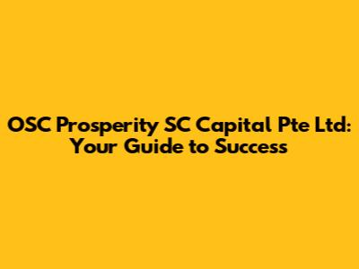 OSC Prosperity SC Capital Pte Ltd: Your Guide To Success