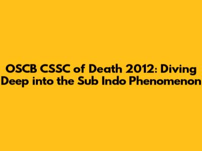 Hey guys! Ever heard of OSCB CSSC of Death 2012 sub indo? It's a title that might sound a bit cryptic at first, but don't worry, we're going to break it down for you. This article is all about demystifying this phrase and exploring what it means in the context of the Indonesian online world. We'll delve into the origins, the cultural significance, and why it continues to pique the interest of many. Get ready to have your questions answered and your curiosity piqued! So, grab your snacks, get comfy, and let's jump right in. This is going to be a fun ride as we uncover the mystery behind this intriguing title.