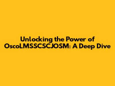 Unlocking the Power of OscoLMSSCSCJOSM: A Deep Dive