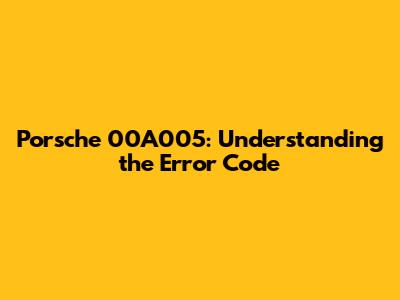 Porsche 00A005: Understanding the Error Code