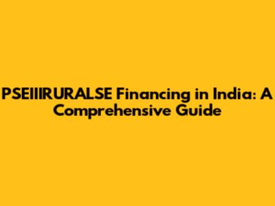 PSEIIIRURALSE Financing In India: A Comprehensive Guide