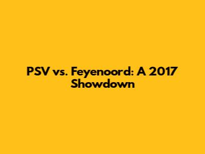 PSV Vs. Feyenoord: A 2017 Showdown