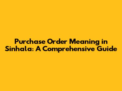 Purchase Order Meaning In Sinhala: A Comprehensive Guide