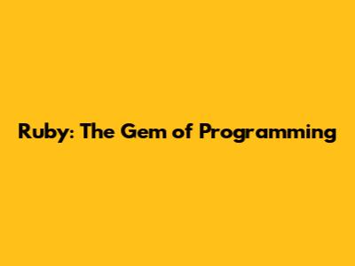 Ruby: The Gem Of Programming