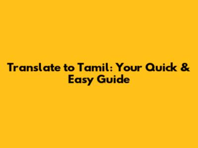 Translate To Tamil: Your Quick & Easy Guide