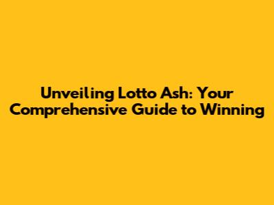 Unlocking Lotto Ash: Strategies, Tips, And Winning Insights