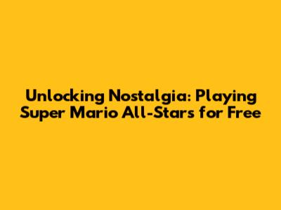 Unlocking Nostalgia: Playing Super Mario All-Stars For Free