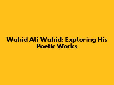 Wahid Ali Wahid: Exploring His Poetic Works