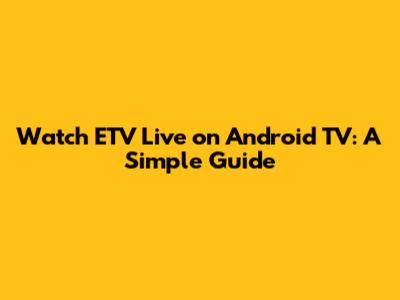 Watch ETV Live On Android TV: A Simple Guide