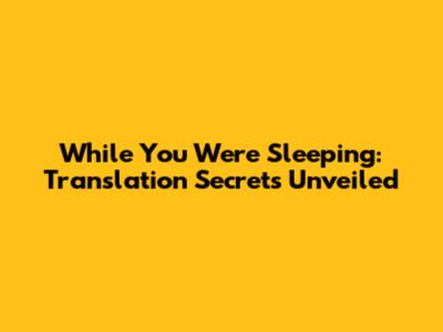 While You Were Sleeping: Translation Secrets