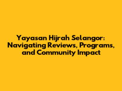 Yayasan Hijrah Selangor: Reviews, Programs, And Impact